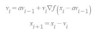 NAG은 현재 파라미터 위치로부터, vt만큼 떨어진 위치의 기울기를 구합니다. 즉, xi-vi지점의 기울기를 구하는 것이죠. 이것은 즉, xi+1과 같습니다. 따라서 NAG는 한 단계를 미리 예측하려고 한다는 것을 알 수 있습니다. 하지만, 아직 현재 모멘텀을 계산하지 않았기 때문에, vi는 계산할 수 없죠. 따라서 avi-1을 대신 사용한다고 합니다.