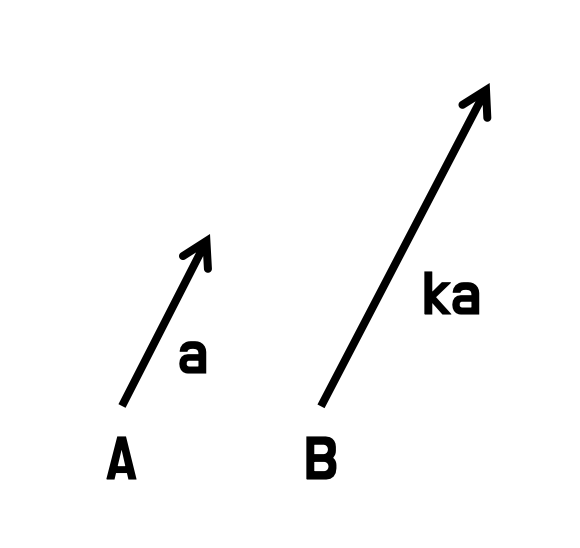 위의 예시를 한번 봅시다. 위의 그림에서 A벡터는 크기가 a입니다. 여기에 스칼라 k를 곱하면 B벡터와 같이 벡터의 크기가 변합니다.