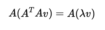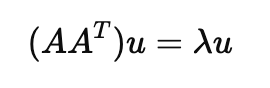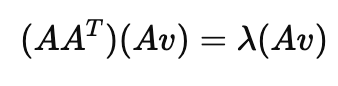 여기서 Av를 새로운 벡터라고 정의한다면, AA^T에 대한 고유값, 고유벡터 정의가 가능해집니다.