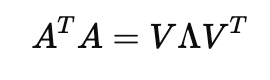 - Λ : A^TA의 고유값 행렬