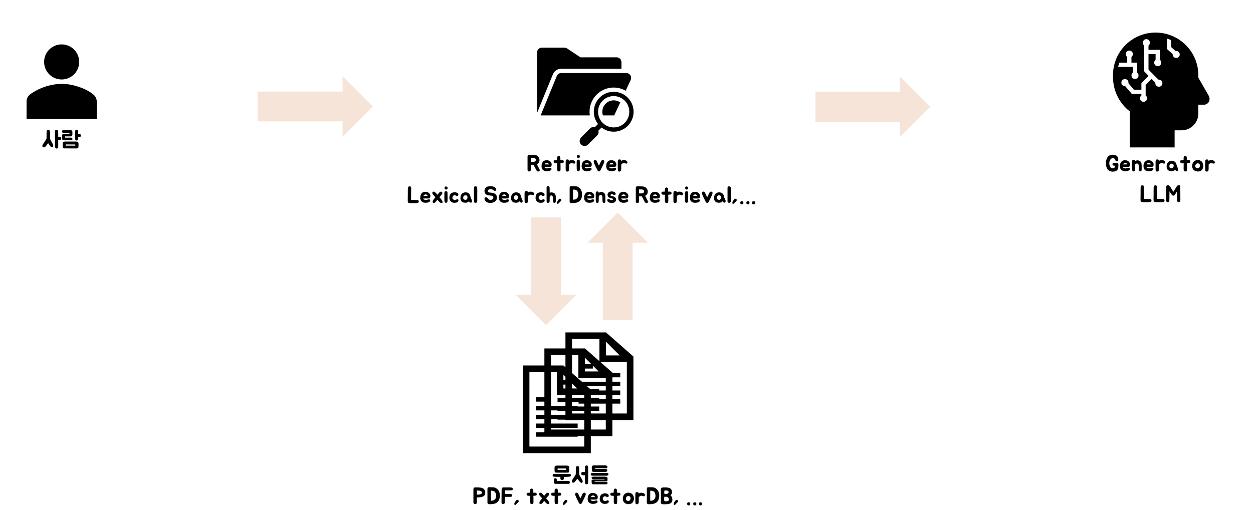 RAG는 크게 문서를 검색하는 Retriever, 답변을 생성하는 Generator로 나뉘어져 있습니다.